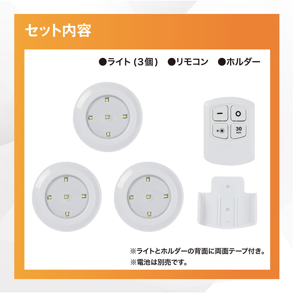 ・ライト:1個につきLED(0.5W)5灯 ・リモコン感知範囲:最大約8m